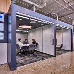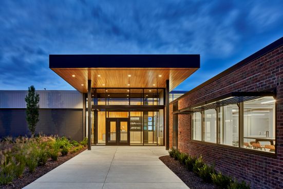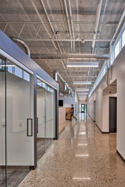 The existing building was comprised of a series of closed, interior spaces, largely outdated and without access to natural light, physical connections, or common spaces from company to company. The new owners challenged Mathison | Mathison Architects to design for transformational change within the footprint of the existing building, creating a modern, high-tech environment that represents the forward-thinking, high-quality work of VanDyken Mechanical.