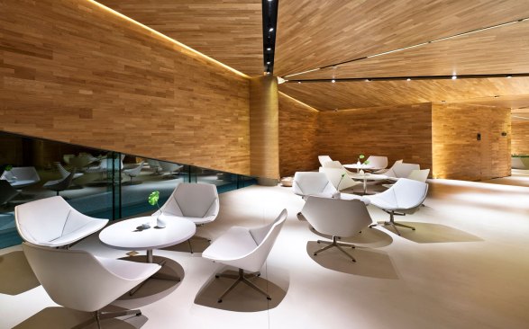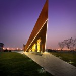 Designed as a permanent show gallery & tourist information center for China’s largest developer Vanke, MOD’s design for the TRIPLE V GALLERY is located along the Dong Jiang Bay coastline in Tianjin China. The client’s program called for 3 main spaces: a tourist information center, a show gallery & a lounge for sales discussion. Requiring their own entrances, the tourist center and the show gallery had to be orientated towards separate existing pedestrian pathways and also operated independently.