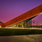 Despite its obvious sculptural qualities, the building’s DNA evolved rationally from a careful analysis of key contextual & programmatic perimeters. The solution merged structure, sculpture, and space into a single form – resulting in the TRIPLE V GALLERY’S triangulated floor plan as well as the 3 soaring edges that have come to define its form.