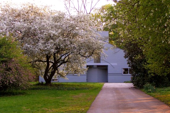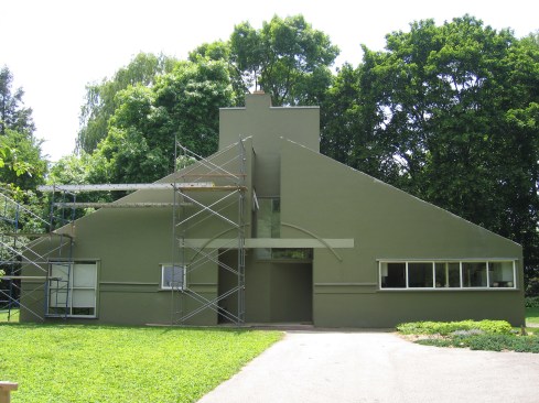 An early example of postmodern architecture and Venturi’s work, this suburban house was built by the architect for his mother as a counter-response to many modern architectural elements of the period. In 2005, the U.S. Postal Service featured the house on a stamp in a series of twelve works of modern American architecture.
