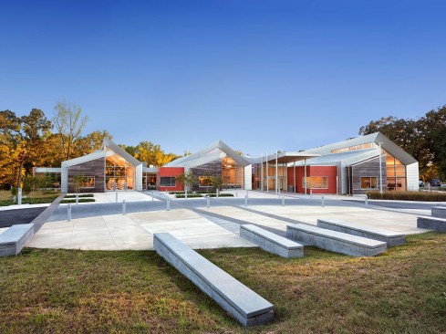 The client and the design team worked hand in hand to develop an intuitive floor plan that maximizes views of the natural setting, further amplified by a back porch–style overlook in the rear of each pavilion. Following that directive allowed the team to consolidate programming and take a balanced approach to open day-lit spaces and enclosed quiet spaces, and to increase efficiency in the mechanical systems and ductwork runs.