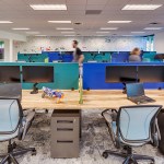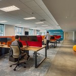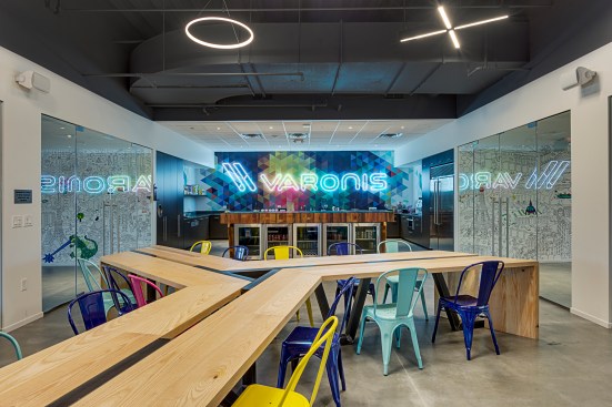 Varonis, a leading provider of software solutions that protect data from insider threats and cyberattacks, recently completed work on a new office for their teams in North Carolina. The space, situated in an office park outside of Raleigh–Durham International Airport, is part of a series of fit outs Varonis has completed across North America that have sought to enforce and enhance their corporate culture while rolling out new interpretations of the brand throughout the different teams and offices. The new space, designed by Pliskin Architecture with the help of Tina Barnard Designs, features workstations and collaboration elements crafted locally in the Raleigh-Durham area, as well as spaces that sustain a wide range of activities from formal work interactions through casual encounters.
