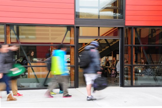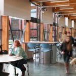 Learning occurs anywhere – and everywhere – with a wide variety of learning spaces distributed throughout the entire school and campus. Shared areas, (dubbed “The Dens” by students) are located adjacent to more formal teaching spaces, a Learning Commons extends the Library into the life of the student body, and a small group presentation room is perched within the Learning Commons. A central courtyard provides sheltered outdoor learning areas, and found spaces throughout the building – including areas outside of counciling offices, at the base of stairs, in widened corridors, and across the commons bridge – are all used for individual and small group work.