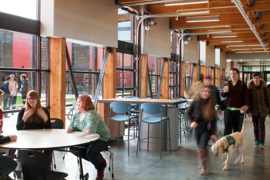 Conversations with the community led to an understanding of the close connection to the landscape that students and staff embraced in their daily lives. The design team sought to preserve this sense of connection by imparting a quality of porosity to the new building. The concept of porosity defines how the building supports spatial connections, how students move in and out of the building, and ultimately how the students themselves become the life force of the building and its site. The result is an overlapping fabric of inner and outer spaces animated by light, transparency, and movement.