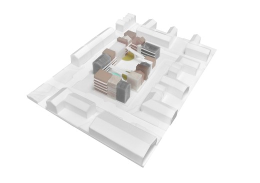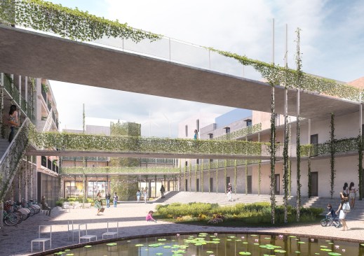 NOMO Studio´s proposal for low – cost housing units in Sollentuna, Sweden revolves around the concept of a neighbourhood that reinforces the character of the area by highlighting the social aspect of living, outdoor life and proximity to nature. A very important part of the design is the courtyard that provides the conditions for a large social exchange and enables an active life. The natural environment should not only be around the area but also within the neighbourhood. The proposal aims to provide the number of young people experiencing housing shortages with small, cheap and attractive apartments. The spontaneous meeting between neighbours is encouraged by the large community areas with different environments, the bridges, which connect the residents literally and metaphorically and the green courtyard which is both public and private place. The design aims to reflect the duality of area between the urban lifestyle and the healthy, full of movement and social interactions way of living.