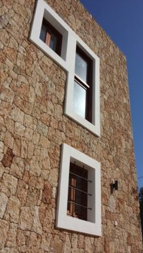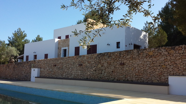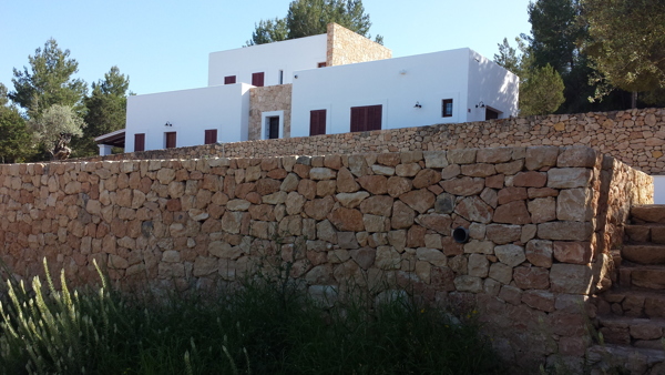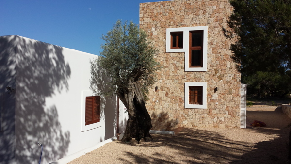 This old existing small cabin, gently nestled in the Ibizian countryside, has undergone its own functional transformation evolving from its original agricultural homestead into its present use as a modern residential home for a German family. This project was undertaken with great care and concern for the sensibilities of the local surroundings, with an integrated goal of using local materials in order to enhance and preserve the overall inherent ambiance that is uniquely Ibiza. Local building techniques were employed to maintain the flavor of the region, while emphasizing the massive presence of sand stone walls, and creating various plot levels which anchor the pool and a monolithic mass façade of the double high wall. The local stone provides a marked optical contrast between the brilliant reflection of pure white rooms both new and established. This two storey addition, representing recovery, refurbishment and extension of work, came to fruition using the materials and simplicity of shapes found within local Ibizian home sites located in the surrounding countryside. The high quality details lends itself to a language of its own whose echo is naturally and purely spoken as it joins the mysterious Ibizian whispers which can be heard throughout the countryside.