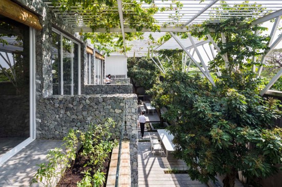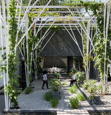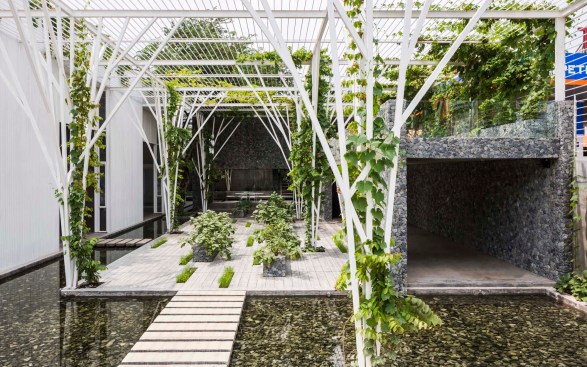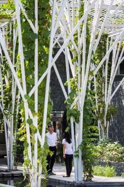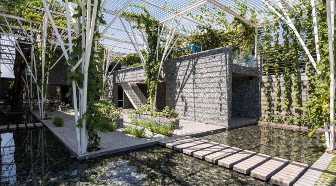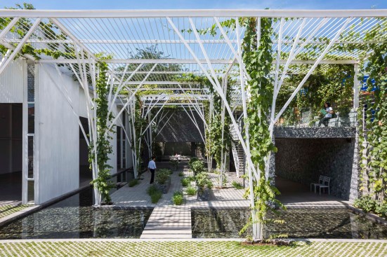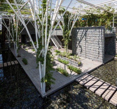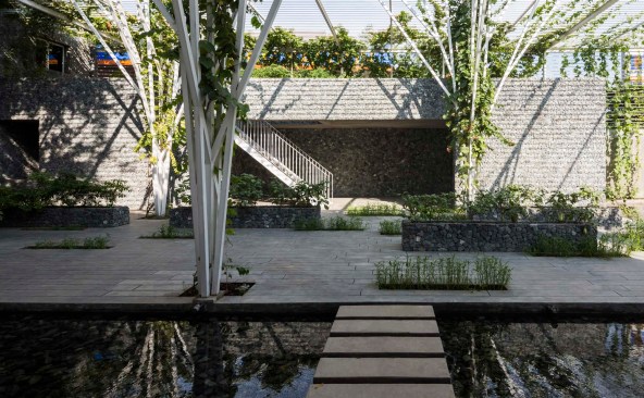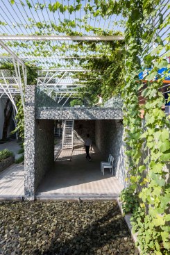 The idea is quite simple: we created a vegetable trellis covering the space for activities below to provide a cool and fresh microclimate, which is a very familiar picture in every Vietnamese people’s subconscious mind.