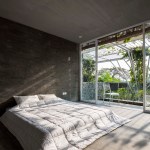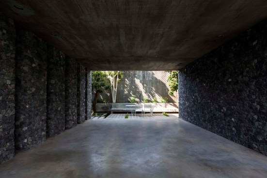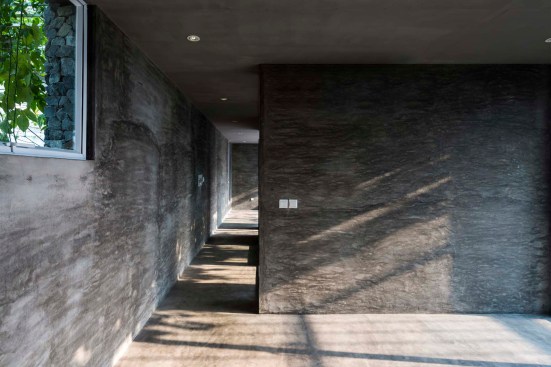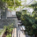 The construction uses eco-friendly materials. The ground floor is tiled with many concrete planks to make it easier for rainwater to penetrate into the ground. This will help decrease flooding in the area.