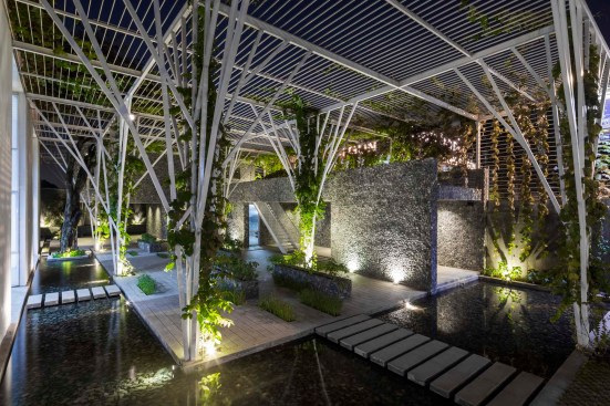 The design of the ground floor is completely open, which helps connect the spaces indoors and outdoors. So, they can be used flexibly and without limits. This space is a multifunctional one which can become a park, public space, restaurant, a coffee shop or a wedding and convention center, etc.