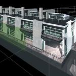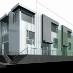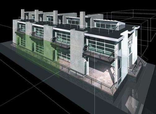 The Modern, 1,900-square-foot units sit atop a private, semisubterranean parking garage containing two spaces for each loft. The rear facades feature roll-up glass doors to catch ocean breezes, and the interior spaces, as the judges noted, contain open floor plans to facilitate a relaxed, beachside lifestyle.