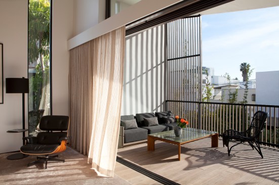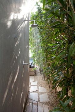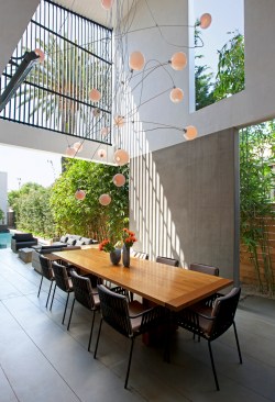 Designed specifically for the Venice lifestyle, indoor-outdoor spaces take advantage of every inch of an extremely narrow lot. Every room opens onto the outdoors, making the home feel like a garden pavilion. Minimal but elegant landscaping in the side yards maximizes the feeling of openness.