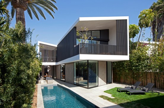 The design for this single-family home, guest house, pool and landscape in Venice, CA solves many complex challenges – limited space, urban density and community resistance – and couples them with climatic opportunities to create a comfortable, open, airy home that grows organically from the issues that define the site.