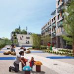 Located on a brownfield site in the South Bronx, N.Y., Via Verde bested more than 30 rival proposals in a sustainable public housing design competition sponsored by the AIA New York Chapter and the New York City Department of Housing Preservation and Development. “In some ways, it was a challenging site, because it’s so long and narrow,” says Dattner’s William Stein, FAIA. He and his design team responded with a long, narrow structure that folds like a paper clip. “The project is organized around a central courtyard, with green roofs stepping up from there,” Stein says.