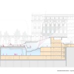 AL_A’s proposal won the judge’s approval and led to a daring engineering and construction challenge that is made visible to the public with the steel columns and beam painted in vivid international orange which are literally holding the weight of history and the Museum’s priceless collections above.