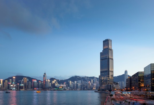 The Rosewood Tower, comprising short-stay hotel amenities, serviced residences, and boutique office space, announces the neighborhood along the waterfront. The landmark tower’s stepped, irregular massing expresses its multiple programmatic divisions while maintaining a cohesive exterior language. Panoramic glass insets offer unobstructed views of Victoria Harbor, while stone piers communicate the tower’s verticality. From other neighborhoods in Hong Kong, the tower’s disposition shifts depending on one’s vantage, contributing to a dynamic skyline experience.