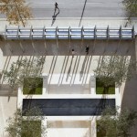Inspired by the adobe architecture of the Middle East, the architects wanted to create a form that looked like it had been carved out of a sinlge block. The towers are clad in brick, and their offset pattern, with the recessed blocks in a lighter color, gives the overall impression of latticework. “It has a level of refinement,” Katherine Chia said. “I think the façade with the brick pattern is great.”