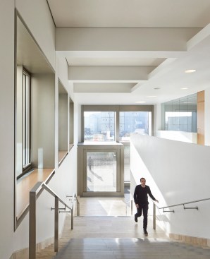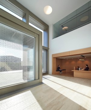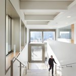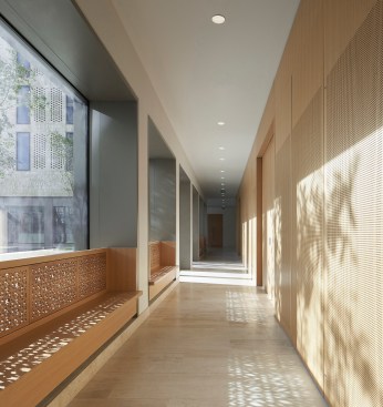 Inside, public areas are flooded with natural light coming in from large expanses of glazing; in the living units, light is filtered through actual brick latticework in front of the floor-to-ceiling windows. Two courtyard gardens provide outdoor public space and the inside public areas are lined with white walls and light wood floors and millwork, some of which creates patterned screens in front of the glazing to continue the façade texture inside. The level of detailing is such that David Baker gave the project perhaps the highest praise an architect can give: “I could live in this place.”