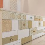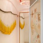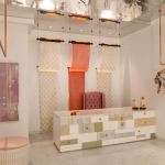 The colour scheme of the space – a pastel palette, was ideal to showcase her garments that adhere to the similar colour tone. The whole place has certain key elements like use of pastel colours, acrylic mirror ceiling, embroidered drawers, mid-century drawer knobs, thread work chandeliers, etc.
