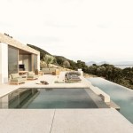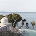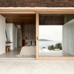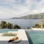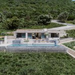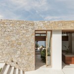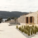 Block722 architects were called to create a private holiday home, joined by a separate structure that houses four guest rooms. The plot is located on a cliffside overlooking the blue waters of the Ionian Sea. Entering the site from the topmost side, visitors are guided down to the main house via a wide ramp. From there, a series of paved terraces and a narrow, natural path lead to a small, secluded rocky beach below.
