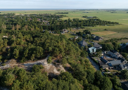 The naturally sloping landscape embraces Villa BW, with a building volume characterised by a double-curved roof coupled with an unmistakable expression of the façade. The twisting roof is created as a result of two overlapping shapes. A gable roof is designed on the dune-side, also characteristic of the street scene on the Oorsprongweg. In contrast, a horizontal roofline is designed for the polder-side.
