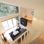The second floor, which is combined with the living room and dining room with a gently sloped ceiling, has rooms like an extension of the living room. The high side lights on the east side of this room reach the morning sunlight to the living room on the first floor. This room can also be used as a bedroom when staying with a large number of people.