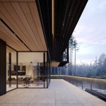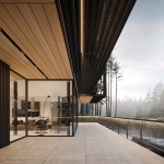 On the -1 floor, there is a garage, a laundry room, and technical rooms. The first floor is for a public area: there is a kitchen, a living room, a private living room so-called salon, a room for staff, an office, guest bathrooms, and a dressing room. The second floor is more private, with a master bedroom, an office, two kids’/guest rooms, bathrooms, a dressing room, and a large common hall. On the third floor, there is a second kitchen and a sauna with access to the terrace. Each level has its own viewpoints on the surrounding landscape.