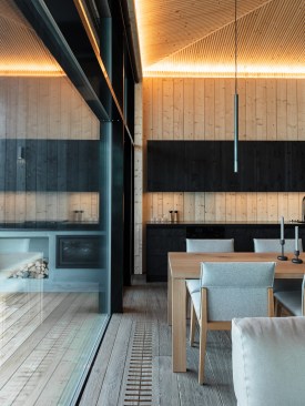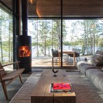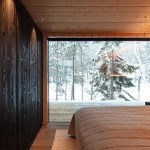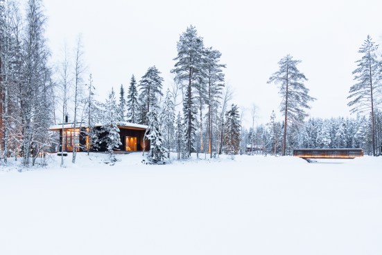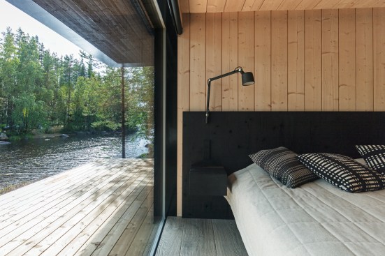 An ideal escape retreat is located on a remote island in lakeside Finland, surrounded by nature. The hideaway cabin is a thought-through entity that adapts to the changing seasons and landscapes. The main cottage and a separate sauna building are connected by their overlapping roof structures. The beautiful views of the lake are generally westwards where the sun sets in the evening. The design was based on respect for the surrounding nature; the goal was to place the buildings on the terrain as naturally as possible, without overpowering the environment. The aim was to effectively maximise all available building permit to allow for a practical and desired programme for leisure purposes. The intention was to create a design that would be as maintenance-free as possible, while bringing the surrounding nature into the atmosphere of the spaces. From a technical point of view, the buildings were designed to be ecological and low-energy-consuming. The materials and colour scheme had to blend in with nature and be as durable as possible.