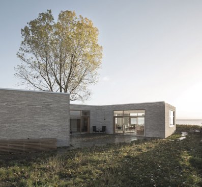 The villa was completed for a private client with the opportunity to build at the edge of the sea. The client had a vision of a simple life in beautiful spaces making the fantastic view an integrated part of everyday life in their home. The result is as unique as the location: a villa designed from four basic volumes with floating transitions. Towards the street, the villa appear serene and closed, the primary volumes broken only by the precise entrance door. Towards the sea and the garden, small courtyards are embraced by open and transparent facades with views towards the sea.