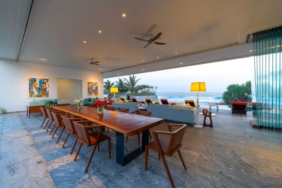 The house makes the best of the drama of this linear progression. A realm of separation is created by the walls of the house, effectively marking out the boundaries of the house as an exclusive zone in the already private confines of the site. The site has two distinctive characters that stand in contrast to one another; the linearity of the enclosed inland area and the abrupt openness of the beachfront vista. Standing between both zones, the house negotiates their meeting with a cinematic unfolding of layered spaces.