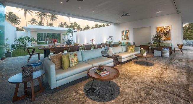 Located in the idyllic yet private beach destination of Talpe, the site is a narrow rectangular plot of land stretching nearly 100m from an internal road in a dramatic progression through an enclosed walled compound that ultimately culminates in magnificent views of the beachfront, the choppy waves of the Laccadive sea literally at the doorstep of the site. Coconut trees and native tropical vegetation dot the site.