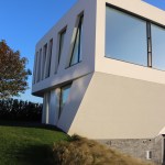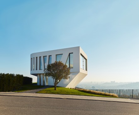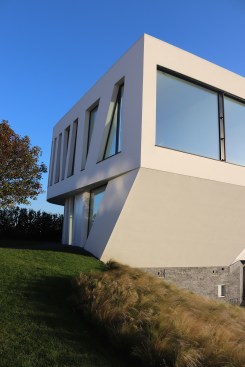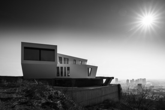 The villa was built on a hill of old vineyards over the city. Relatively narrow land oriented vertically onto a private street lead to a design of a longitudinal multistoried structure – it has one underground and two overground floors. The difficult process of searching for an artful state of balance, lightness, freedom, and flight crystalized a true gem, which doesn’t only offer a beautiful view but is also beautiful to look at.