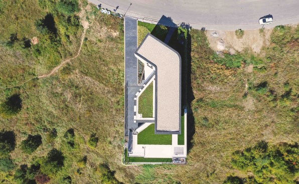The open exterior parts of the villa ensure tranquility and privacy. They naturally create leeward and seclusion on a nevertheless exposed place. The top part looks light, it is lightened by enjambments, which cover the terrace on its end but also afoot passage along the house towards it. Attractive location and difficult conditions make a building in its context unique. Life in it isn’t ordinary living but the contrary – real enjoyment.