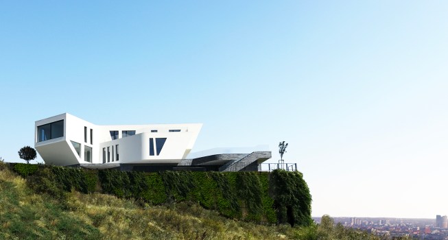 The panoramic view was what inspired architects JANREVAJ for the design of Villa Sky, which swims with the clouds. Another unique private residence from the 22 White gems collection is this time located in an exposed location in a lucrative neighborhood of Bratislava. An unforgettable form and clearly readable dynamic shapes are an authorial style of the atelier and its philosophy – “from line to form”.