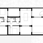 The overall geometry of the house is based on a repeated sequence of four volumes, inscribed in a regular pattern, enclosed within a peripheral wall, and organizing four courtyards within the dwelling.