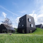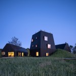 The Villa in the Dutch countryside near Vught gives a contemporary twist to the local farmstead typology. Traditionally, the Dutch ‘hoeve’ is an ensemble of farmhouses and living quarters loosely clustered around a courtyard. The central open space is protected, yet open to the surrounding landscape. This spatial arrangement guided the design of the Villa. The Villa’s functions are distributed within three distinct volumes, shaped to resemble the vernacular of a small village.