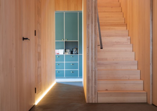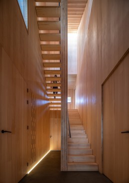 Wood is used for both the structure and interior finish, a material that is at once sustainable and visually warm. The three buildings have a cross-laminated timber structure and European silver fir interior surfaces, a type of wood that has an exceptionally smooth and uniform texture. Compared to other solid construction methods, relatively little energy is needed for the production and processing of cross-laminated timber.