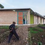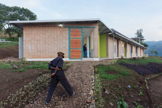 Located in the 40-acre village of Kigutu, a 2.5-hour drive from Burundi’s capital, is Village Health Works—an organization founded by a native Burundian as a New York– and Burundi-based nonprofit that provides healthcare for the surrounding communities. Designed by New York’s Louise Braverman, Architect, the 6,000-square-foot, 18-bed staff dormitory takes its inspiration from the local vernacular. The concrete structure is infilled with locally made bricks, and features deep porches that nod to the indoor/outdoor communal living spaces of the region and promote community engagement. Kigutu is entirely off the grid, and a solar array and solar hot water heaters located at the rear of the structure provide all power. Dug into the hillside as it is, the brightly colored dormitory takes advantage of the insulating land mass for natural cooling.