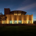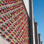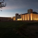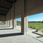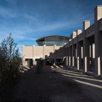 The surrounding wall was done using perforations achieved with the insertion of wine glasses —a vital element for wine enjoyment— that opens to the four compass points and mark the main access towards the general entrances, the vineyard, the lake garden and the ramp next to the figs and olives orchard. This rectangular volume ends with a wooden and steel vault that refers to the traditional seal of the wine bottles.