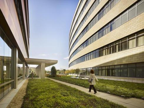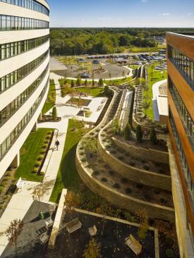 “Elegant, nimble and always a connection to outside views” captures the jury’s reaction to this large new replacement hospital located in between wetland preserves and the Atlantic City Expressway in New Jersey. Situated on 125 acres, Virtua Voorhees is a state-of-the-art hospital defined by three areas of care, including women and children, obstetrics and adult medical, and surgical with supporting adult and pediatric emergency departments. The building design features two primary masses: a sensuously curved patient bed tower and a testing, surgical and support services block. Both forms are pinned together by a central spine that distributes people, materials and mechanical systems throughout the building. This feature also will enable the hospital to grow over time. Energy efficient glass and natural materials of stone and wood are prominent to create texture, warmth and a healing environment. The patient tower offers lush views of the preserve, fostering a connection with nature and daylight. Site planning and building massing reflect a sensitive sustainable footprint that draws daylight deep into the facility. Green roofs absorb rainwater, with excess used to recharge the constructed wetlands.