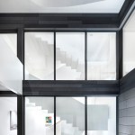 Sustainability A 15.4-kiloWatt rooftop photovoltaic system covers an estimated 90% of the home’s annual energy needs, offsetting 18.5 tons of CO2 emissions each year (equal to the annual energy use of 1.8 average homes). Deep overhangs on the south facades reduce heat gain, while large windows and the central light well reduce the demand for artificial light. A variable refrigerant flow (VRF) mechanical system optimizes power consumption, allowing for precise thermal control throughout the house and eliminating heating and cooling waste.