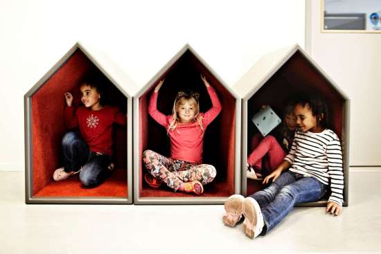 The structure is built to match the children’s height so they can find composure in the small niches and caves, while the adults can easily observe the entire room.