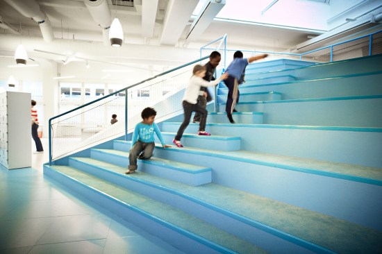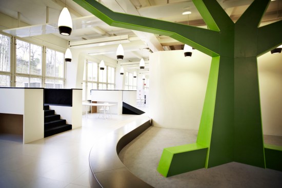 Vittra Telefonplan deliberately uses its interior design as a means of developing the school and its educational principles. Rosan Bosch has used challenging custom-made furnishings, learning zones and room for the individual student to facilitate differentiated teaching and learning in a school where the physical space is one of the most important tools for educational development. Instead of a classic desk-and-chair setup, for example, a giant iceberg that features a cinema, a platform and room for relaxation and recreation now forms the setting for many types of learning situations, while flexible labs provide opportunities for focusing on special themes and projects.