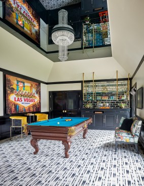 The client wanted to take what was an outdated game room and turn it into something fun! The result was a really creative room with a true Vegas feel!