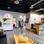 The work environments feature natural and color corrected indirect lighting, uniquely designed collaborative spaces, specialty lounge and break out areas and product and brand display opportunities throughout. The furnishings remain a somewhat eclectic combination of pre-owned, vintage, new and custom elements combined to exemplify the Volcom attitude and strengthen their unique work ethic.