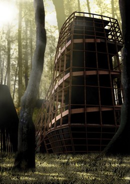 Thus the project wait + watch aims to serve the public as an outlook tower where visitors can experience the forest in a series of curated vies and experiences. The journey to the site is reflected in the experience of the building. Contradictory spaces in the tower excite the senses, on the way up, visitors will ascend through the core with limited views to the forest outside. Each view is framed to highlight a specific feature of the forest, giving the viewer a framed window in which they can appreciate the natural environment. But on the way down their view will be opened up to the wide expanse available to them with little separating them from the view and the elements. These contradictory views offer an exciting reading of the site and provides an educational outlook to first time visitors.