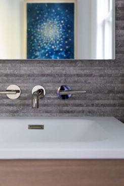 On the second level, specific programmatic updates improved the sense of openness in a home comprised of small rooms and corridors. At the top of the stairs, the space opens up to a new room for sitting or doing homework, filled with south light. An upstairs bedroom and shared kids’ bathroom was also updated.