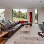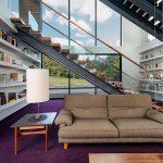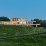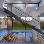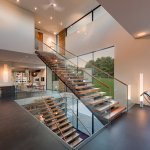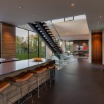 The area mostly features traditional homes, but with the site being so large and with no close neighbors nearby, the clients felt free to build a fully modern home with lots of glass through which to enjoy the spectacular sights of the changing seasons.