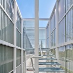 The size of the workshop unit and the office building –with a larger floor area than one of the Eixample’s square blocks designed by Ildefons Cerdà– and the length of the dynamic test track to be covered, required a convincing and symbolic intervention. This would at the same time supply the Centre with material and volumetric continuity, as well as providing a contemporary image in tune with the institution’s current requirements.