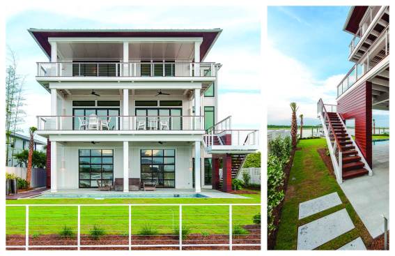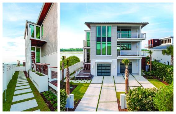 This home is located on the Intracoastal Waterway in Wrightsville Beach, NC. The owners requested a contemporary design that is also referential to the character of the coastal community and environment in which it is situated; where enjoyment of views, breezes, and water could be exploited in every space. The architect piled this analogy throughout in the planning and detailing of the home – taking as inspiration fine wooden powerboats like those manufactured by Riva and Chris Craft.