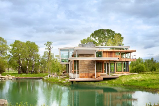 Watershed lodge is sited among spring-fed ponds on a 2000-acre Montana ranch in the flood plain near the mouth of the Yellowstone River. The wondrous geysers, hot springs and bountiful wildlife of this environment have inspired its stewardship as a place of inspiration to be preserved for the enjoyment of future generations.